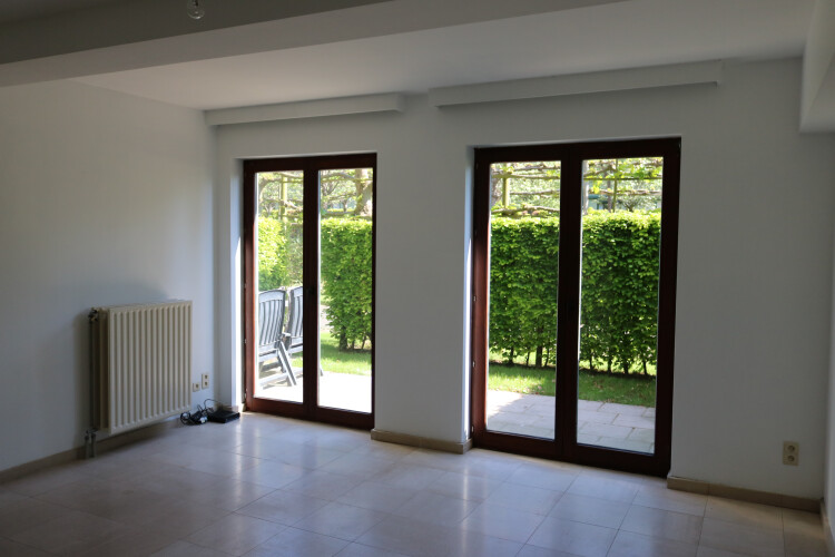 Schitterende locatie, op wandelafstand van GHB, centrum Leuven en openbaar vervoer. Inkomhal, nieuw toilet, woonkamer met zicht op terras/tuin, ingerichte keuken, ijskast-oven-kookplaat-dampkap - dubbele spoelbak), 1 slaapkamer, nieuwe badkamer (bad + douchescherm, toiletmeubel, ventilator, handdoekradiator), aansluiting wasmachine/droogkast. Afz. berging, gesloten autobox in ondergrondse parking.